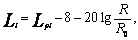 Октавный уровень звукового давления в контрольных точках на расстоянии R от вентилятора вычисляют по формуле